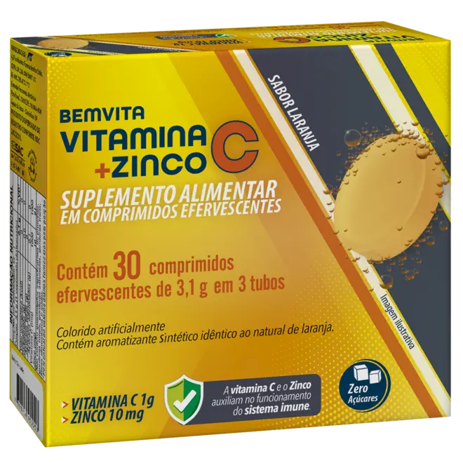 BEM VITA VITAMINA C + ZINCO EFERVECENTE LARANJA 30 COMPRIMIDOS UNIFABRA