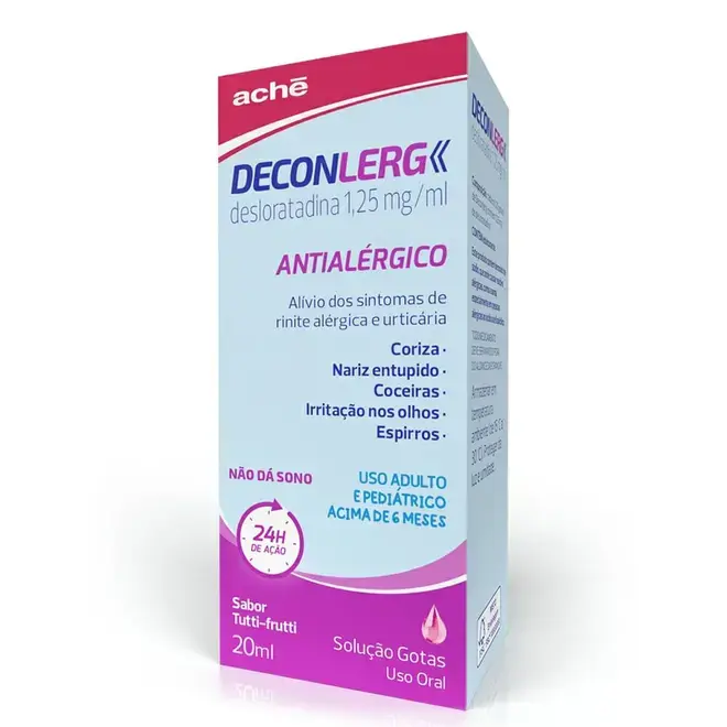 Serve para: Aliviar rapidamente os sintomas associados à rinite alérgica (como espirros, coriza, coceira no nariz e nos olhos) e à urticária (erupções na pele com coceira). É uma solução em gotas, frequentemente utilizada para crianças, devido à facilidade de administração e ao sabor agradável de tutti-frutti.