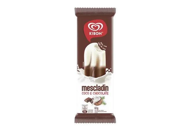 Kibon Mescladin Coco e Chocolate 63 g: sorvete no palito com coco suave e cobertura de chocolate intenso — sabor tropical e indulgente num único momento.