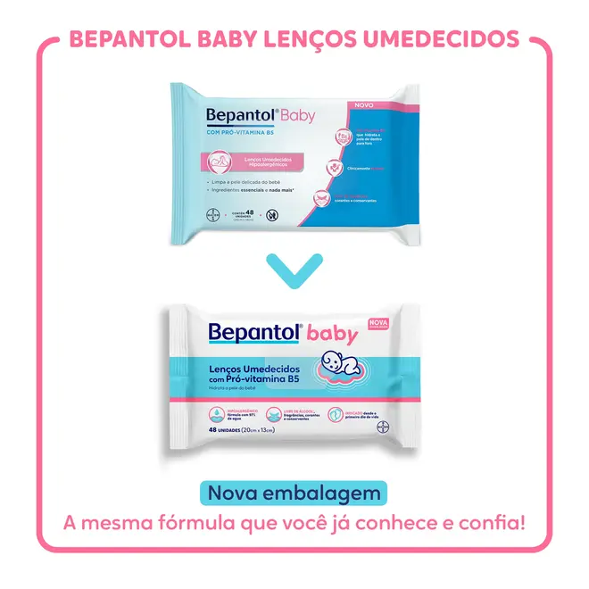 Os Lenços Umedecdos Bepantol Baby são toalhas umedecidas contendo Pro-Vitamina B5, que limpam a pele delicada do bebê ao mesmo tempo que a hidrata, de fora para dentro.