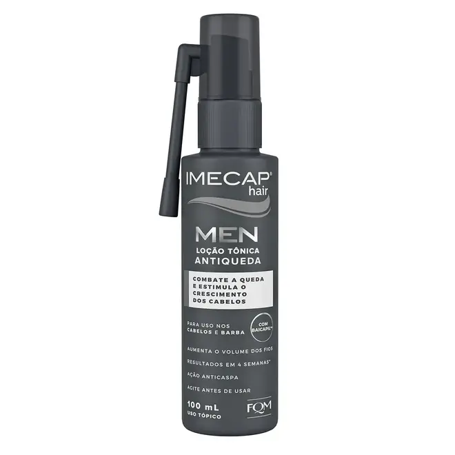 Loção Tônica Imecap Hair Men Antiqueda 100ml estimula o crescimento, fortalece os fios e combate a queda capilar masculina. Resultados visíveis e aplicação prática.